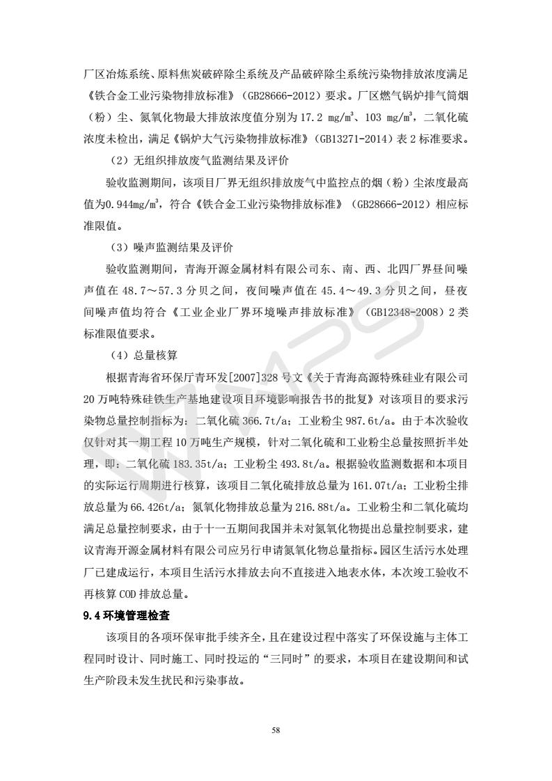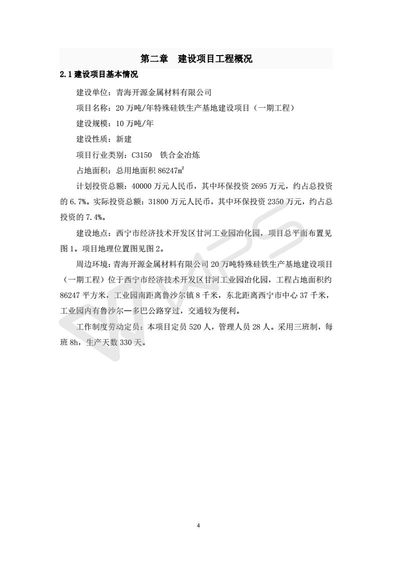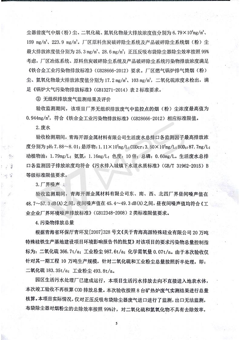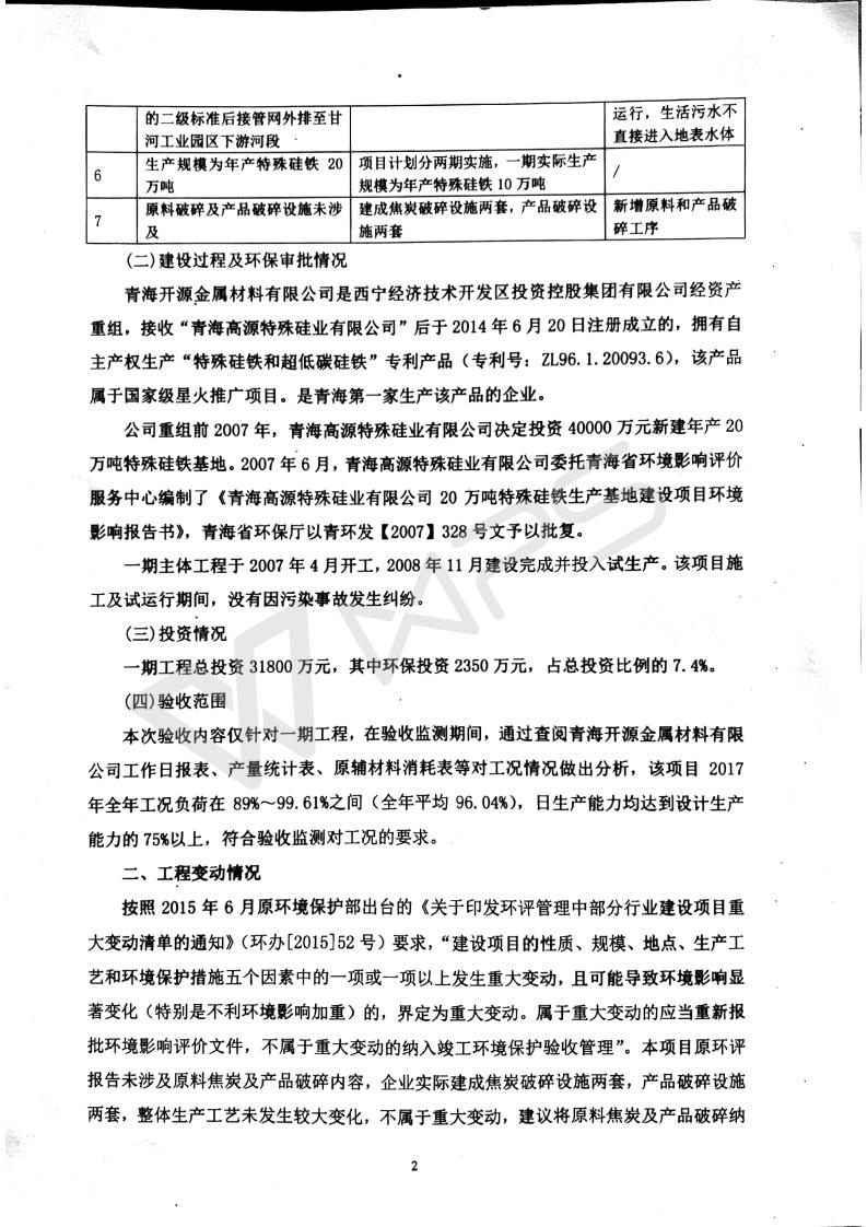 青海開源金屬材料有限公司20萬噸特殊硅鐵生產(chǎn)基地建設(shè)項目(一期工程)竣工環(huán)境保護(hù)驗收報告書會后修改20180521