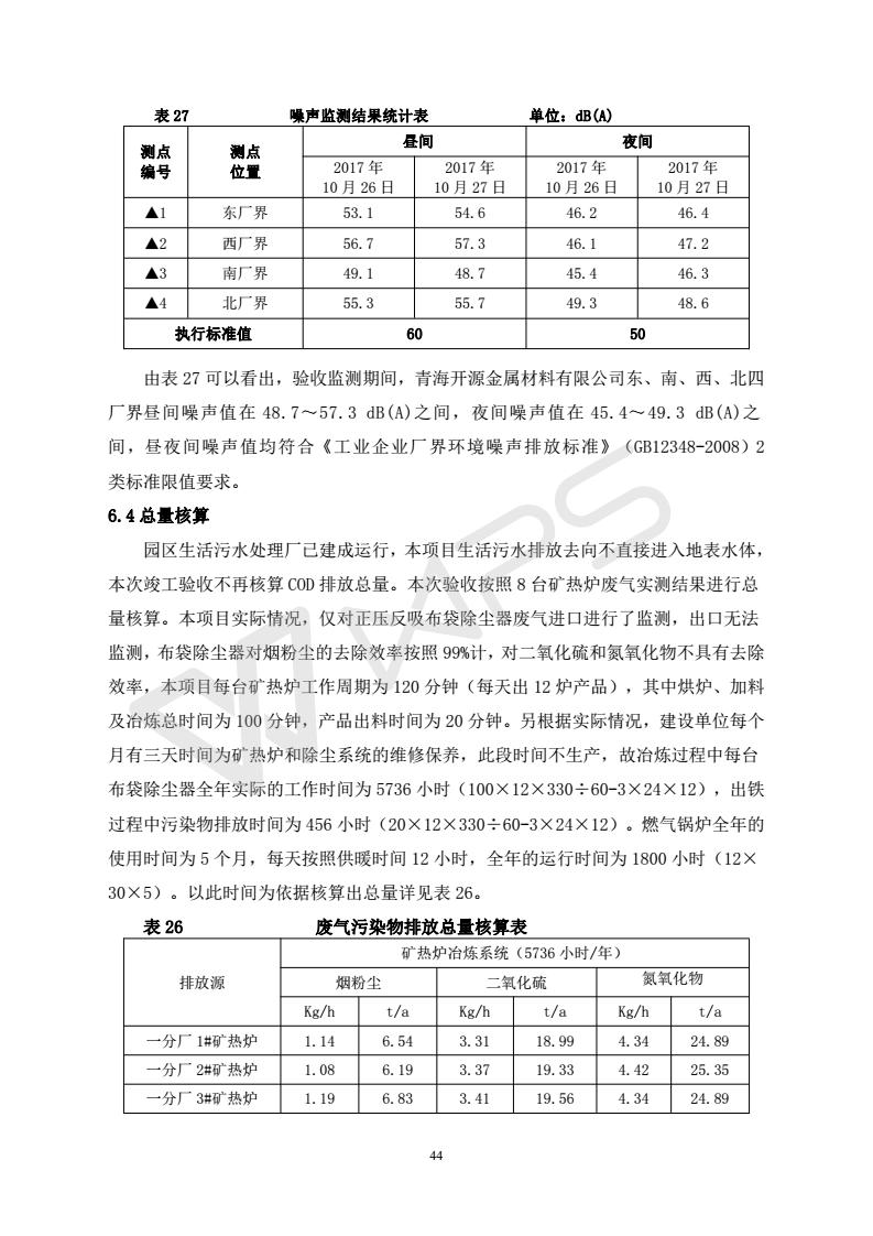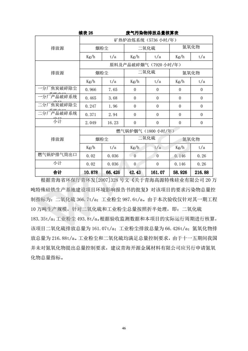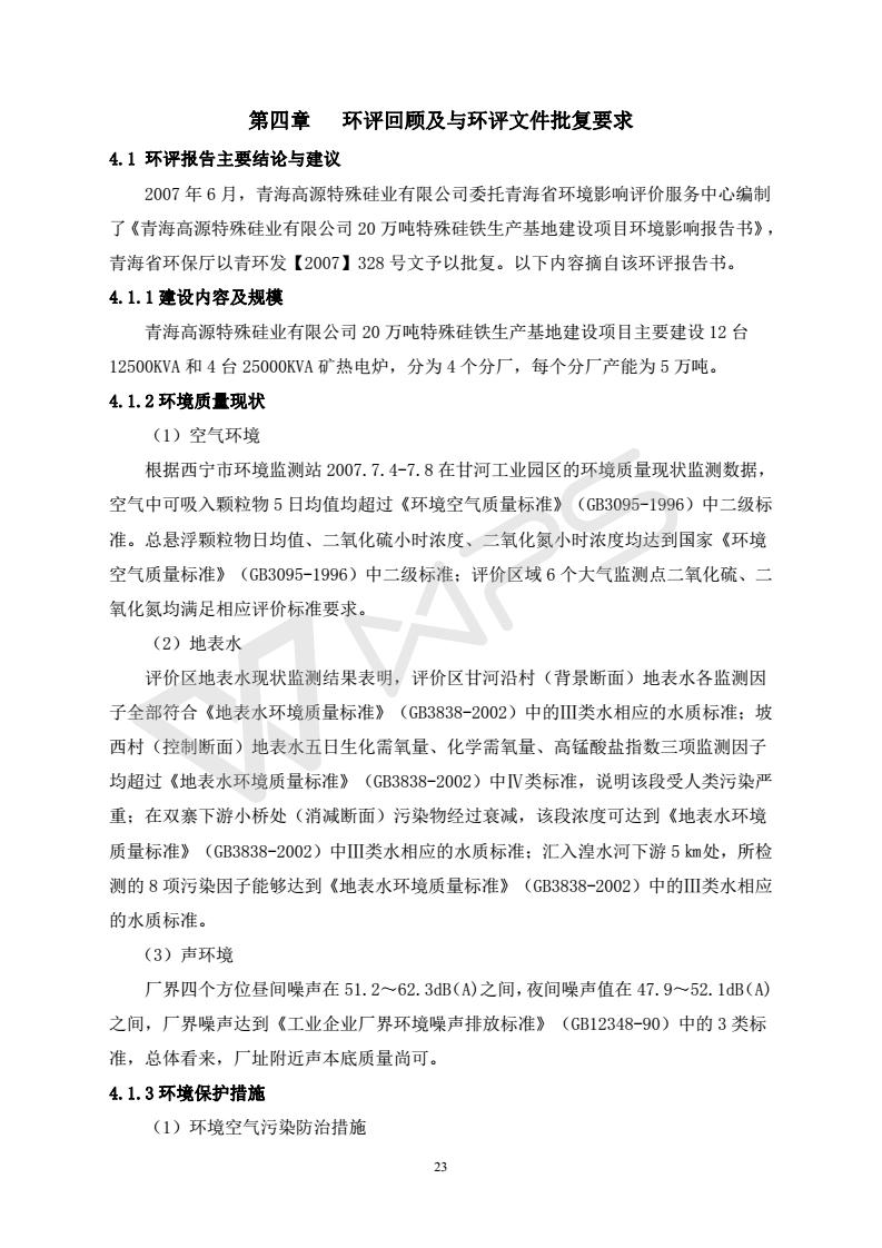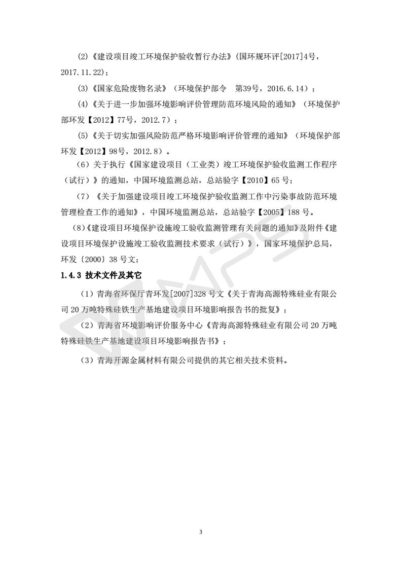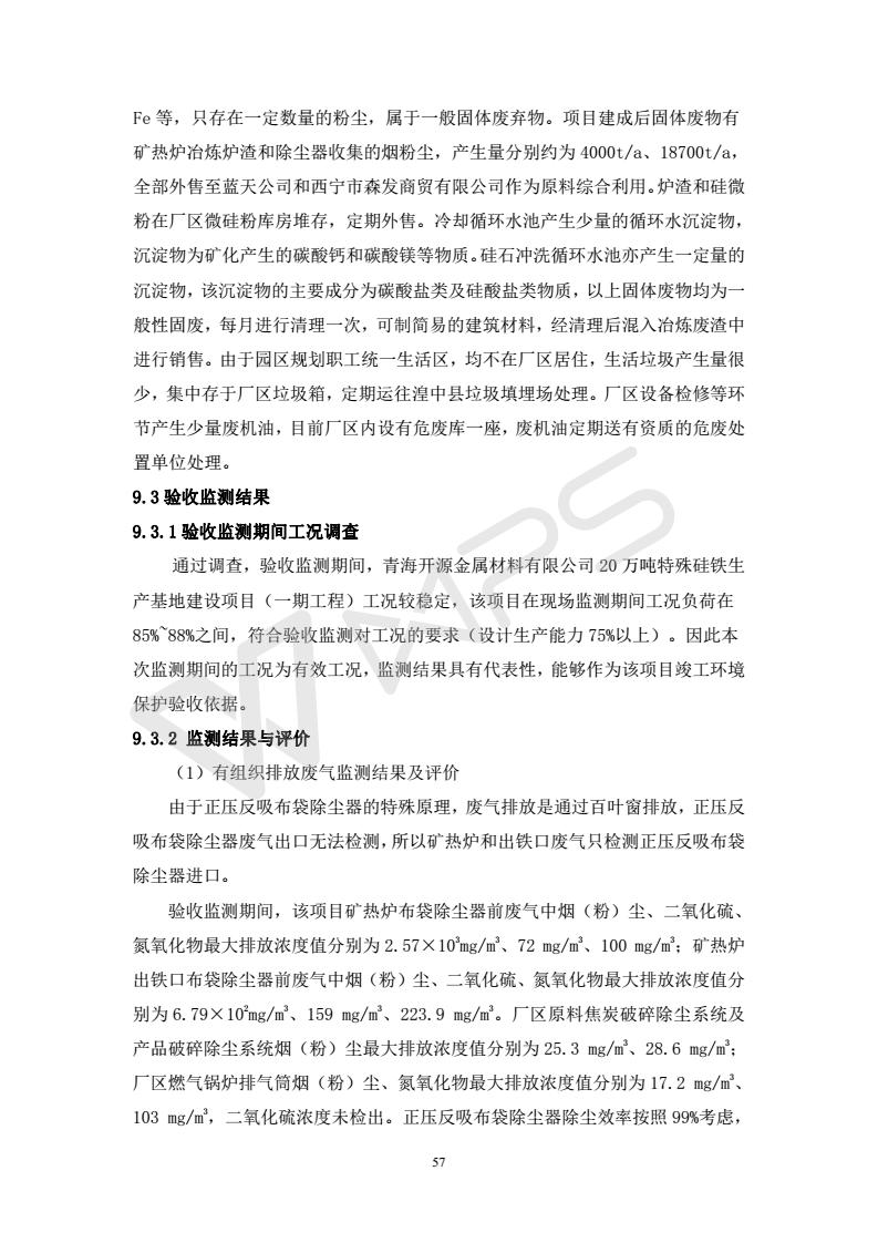青海開源金屬材料有限公司20萬噸特殊硅鐵生產(chǎn)基地建設(shè)項目(一期工程)竣工環(huán)境保護(hù)驗收報告書會后修改20180521