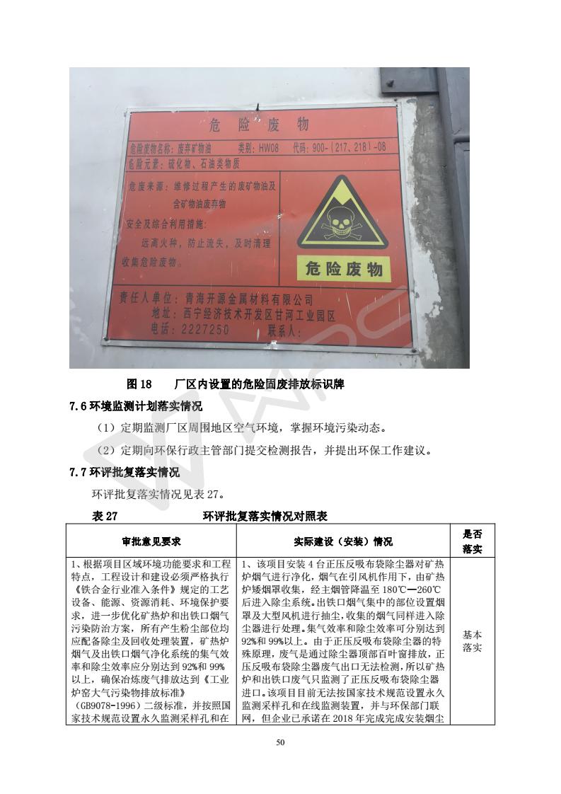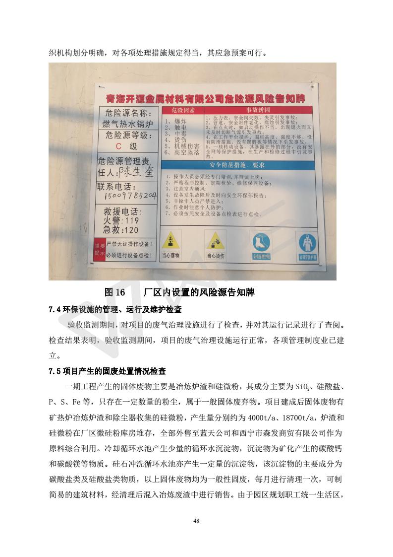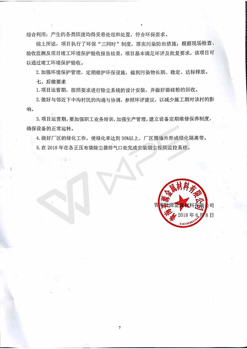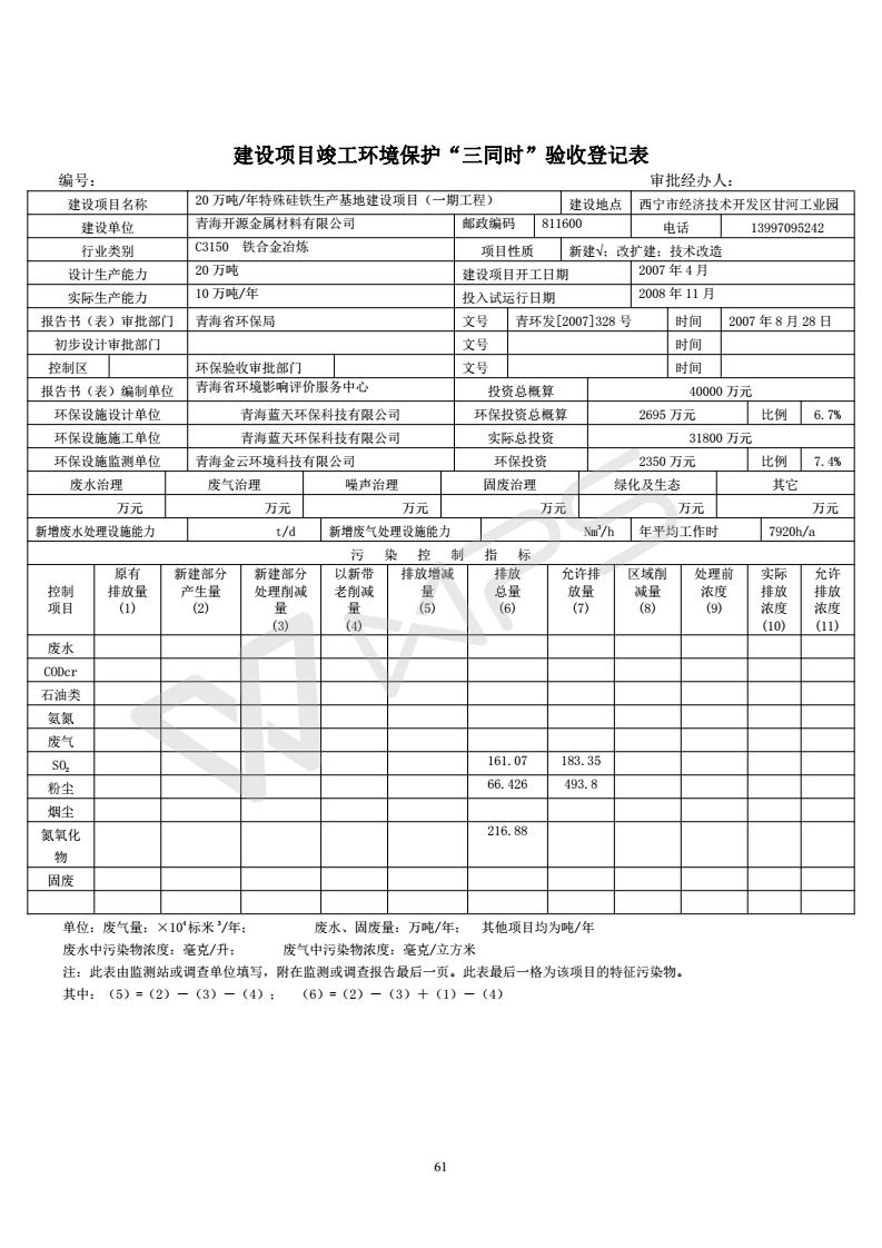 2018年1月11日,青海開源金屬材料有限公司組織召開20萬噸/年特殊硅鐵生產(chǎn)基地建設(shè)項目(一期工程)竣工環(huán)境保護(hù)驗收會。 青海開源金屬材料有限公司20萬噸特殊硅鐵生產(chǎn)基地建設(shè)項目(一期工程)驗收組意見.