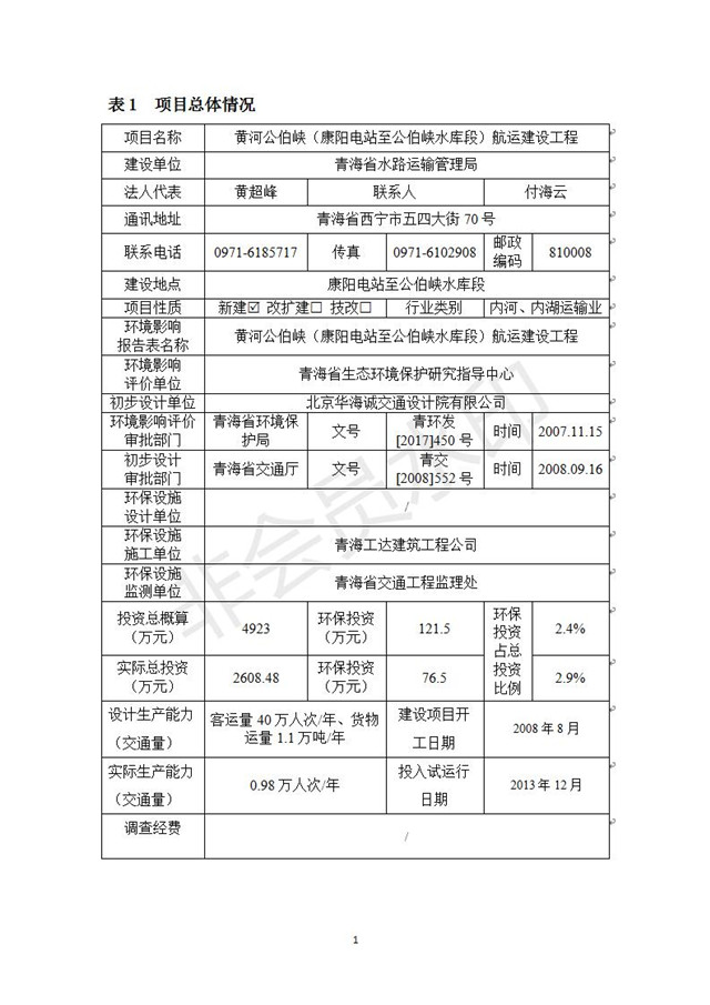 黃河公伯峽(康楊電站至公伯峽水庫(kù)段)航運(yùn)建設(shè)工程竣工環(huán)境保護(hù)驗(yàn)收調(diào)查報(bào)告表公示發(fā)布日期:(2018-11-16) 點(diǎn)擊次數(shù):2573 |