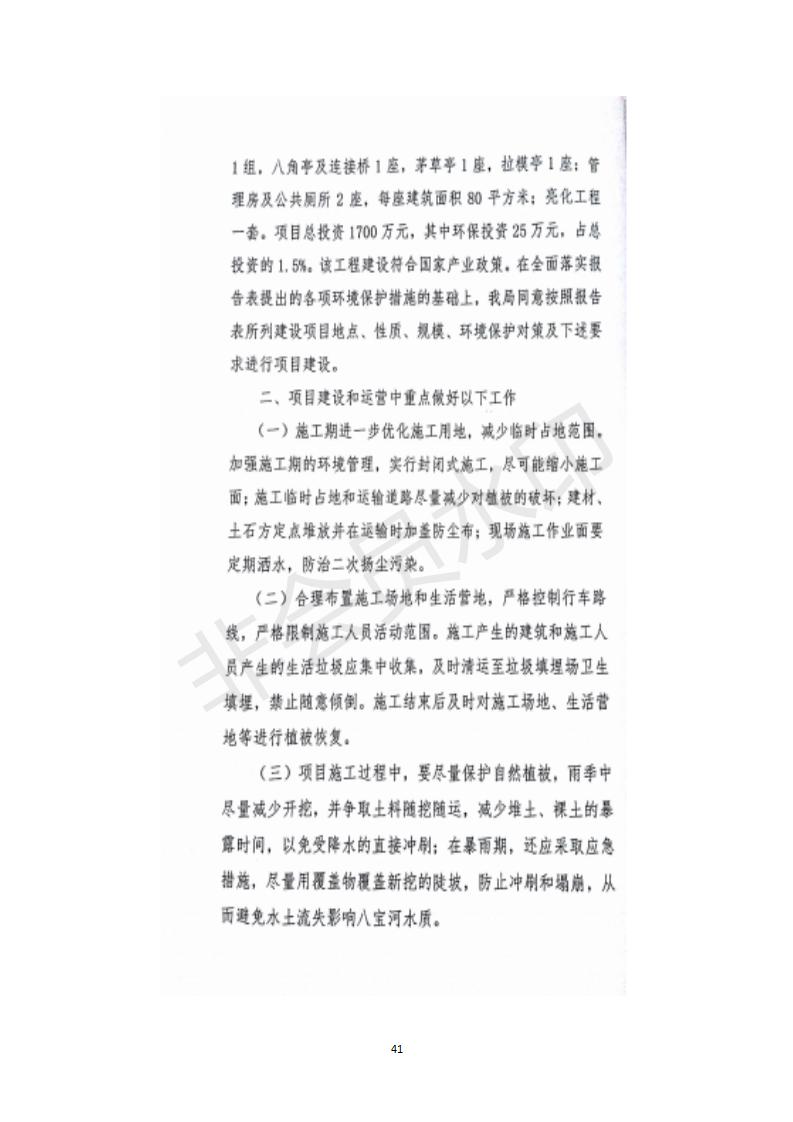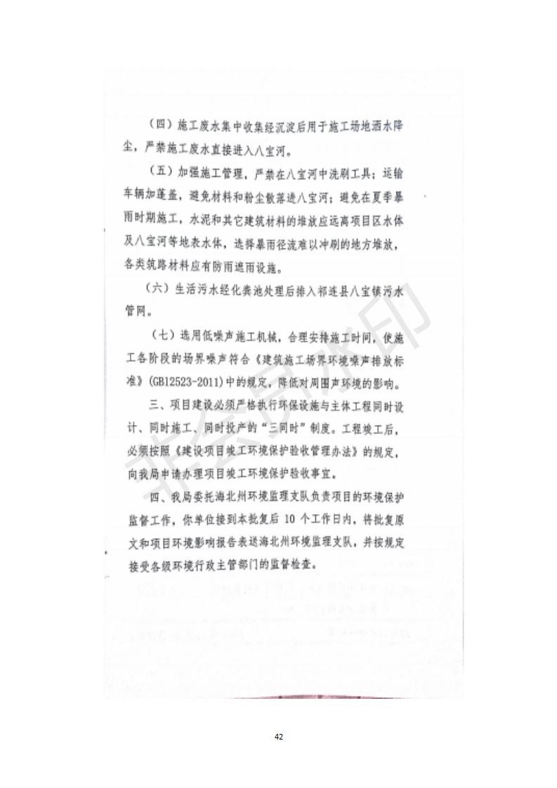 根據(jù)中華人民共和國(guó)務(wù)院令第682號(hào)《國(guó)務(wù)院關(guān)于修改〈建設(shè)項(xiàng)目環(huán)境保護(hù)管理?xiàng)l例〉的決定》和《建設(shè)項(xiàng)目竣工環(huán)境保護(hù)驗(yàn)收暫行辦法》(國(guó)務(wù)院令682號(hào)),祁連縣二寺灘公園項(xiàng)目竣工環(huán)境保護(hù)驗(yàn)收內(nèi)容(包括竣工環(huán)境保護(hù)驗(yàn)收調(diào)查表和驗(yàn)收意見(jiàn))公示如下。 一、項(xiàng)目名稱:祁連縣二寺灘公園項(xiàng)目竣工環(huán)境保護(hù)驗(yàn)收調(diào)查表 二、地點(diǎn):祁連縣八寶鎮(zhèn)城東生態(tài)組團(tuán)片區(qū) 三、建設(shè)單位:祁連縣環(huán)境保護(hù)和林業(yè)局 四、建設(shè)內(nèi)容:公園廣場(chǎng)入口、水景景觀、輔助工程、綠化建設(shè) 五、公示時(shí)間:二〇一九年三月十一日至二〇一九年四月八日 六、聯(lián)系人:張工 公示期間,對(duì)上述公示內(nèi)容如有異議,請(qǐng)以書(shū)面形式反饋,個(gè)人須署真實(shí)姓名,單位須加蓋公章。
