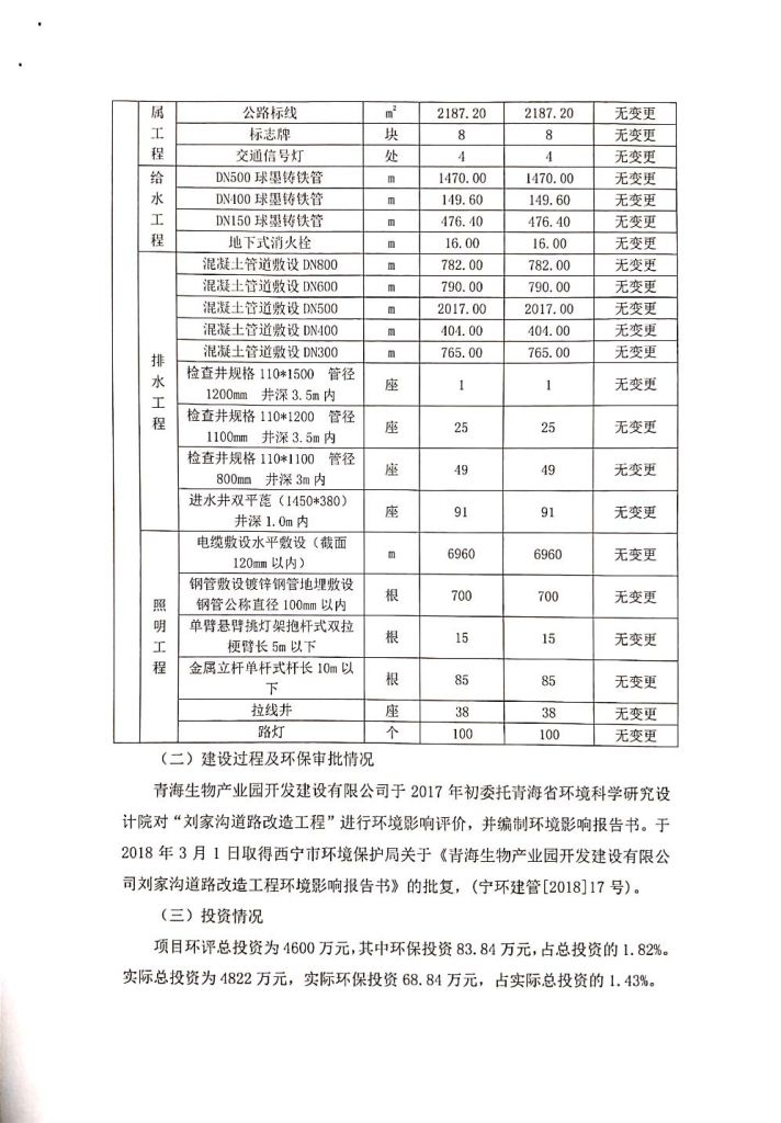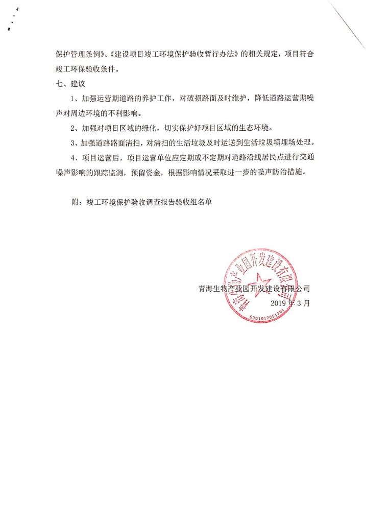 青海生物產(chǎn)業(yè)園開發(fā)建設(shè)有限公司劉家溝道路改造工程竣工環(huán)境保護(hù)驗收調(diào)查公示發(fā)布日期:(2019-3-14) 點(diǎn)擊次數(shù):3014 |