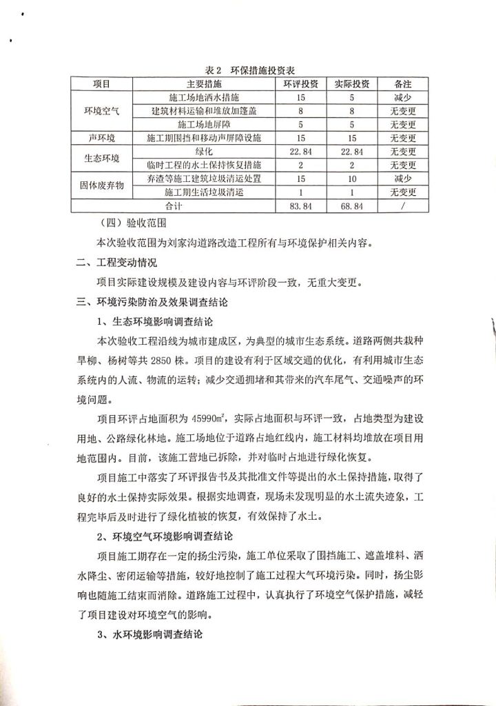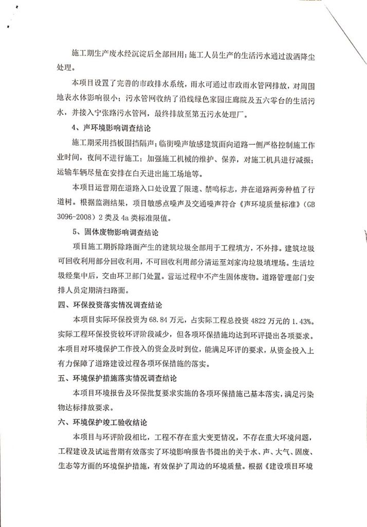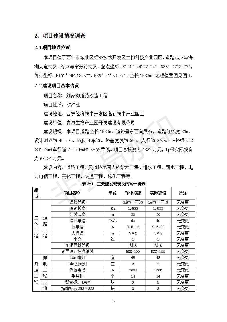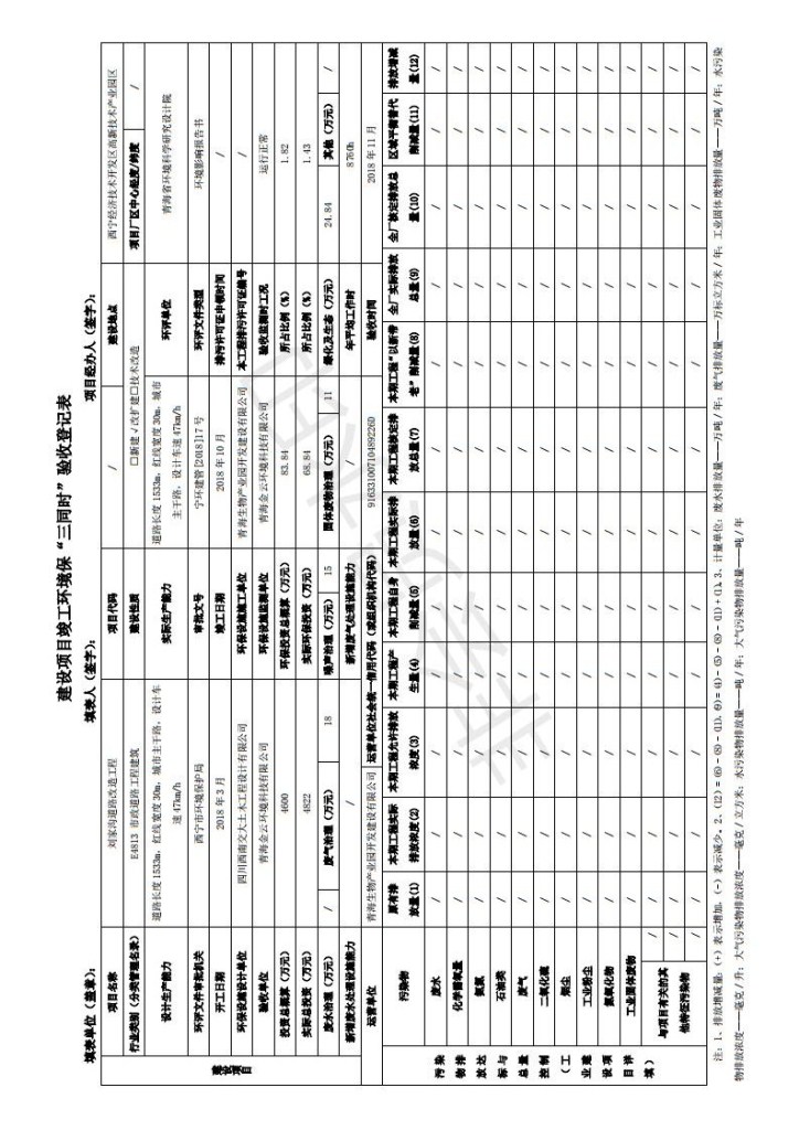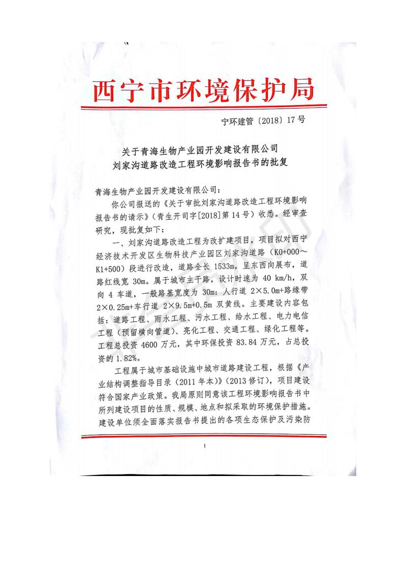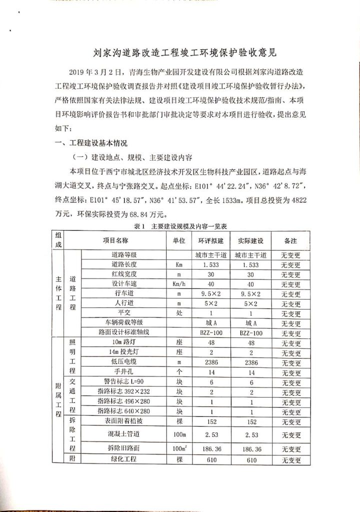 根據(jù)中華人民共和國務(wù)院令第682號《國務(wù)院關(guān)于修改〈建設(shè)項目環(huán)境保護(hù)管理條例〉的決定》和《建設(shè)項目竣工環(huán)境保護(hù)驗收暫行辦法》(國務(wù)院令682號),劉家溝道路改造工程竣工環(huán)境保護(hù)驗收內(nèi)容(包括竣工環(huán)境保護(hù)驗收調(diào)查報告和驗收意見)公示如下: 一、項目名稱:劉家溝道路改造工程 二、地點(diǎn):青海省西寧市城北區(qū)生物園區(qū) 三、建設(shè)單位:生物產(chǎn)業(yè)園開發(fā)建設(shè)有限公司 四、建設(shè)內(nèi)容:劉家溝道路經(jīng)改造后全長1533m,道路呈東西向展布,道路紅線為30m。設(shè)計時速為40km/h,雙向4車道。 五、公示時間:二〇一九年三月十四日至二〇一九年四月十一日 六、聯(lián)系人:張工 公示期間,對上述公示內(nèi)容如有異議,請以書面形式反饋,個人須署真實姓名,單位須加蓋公章。