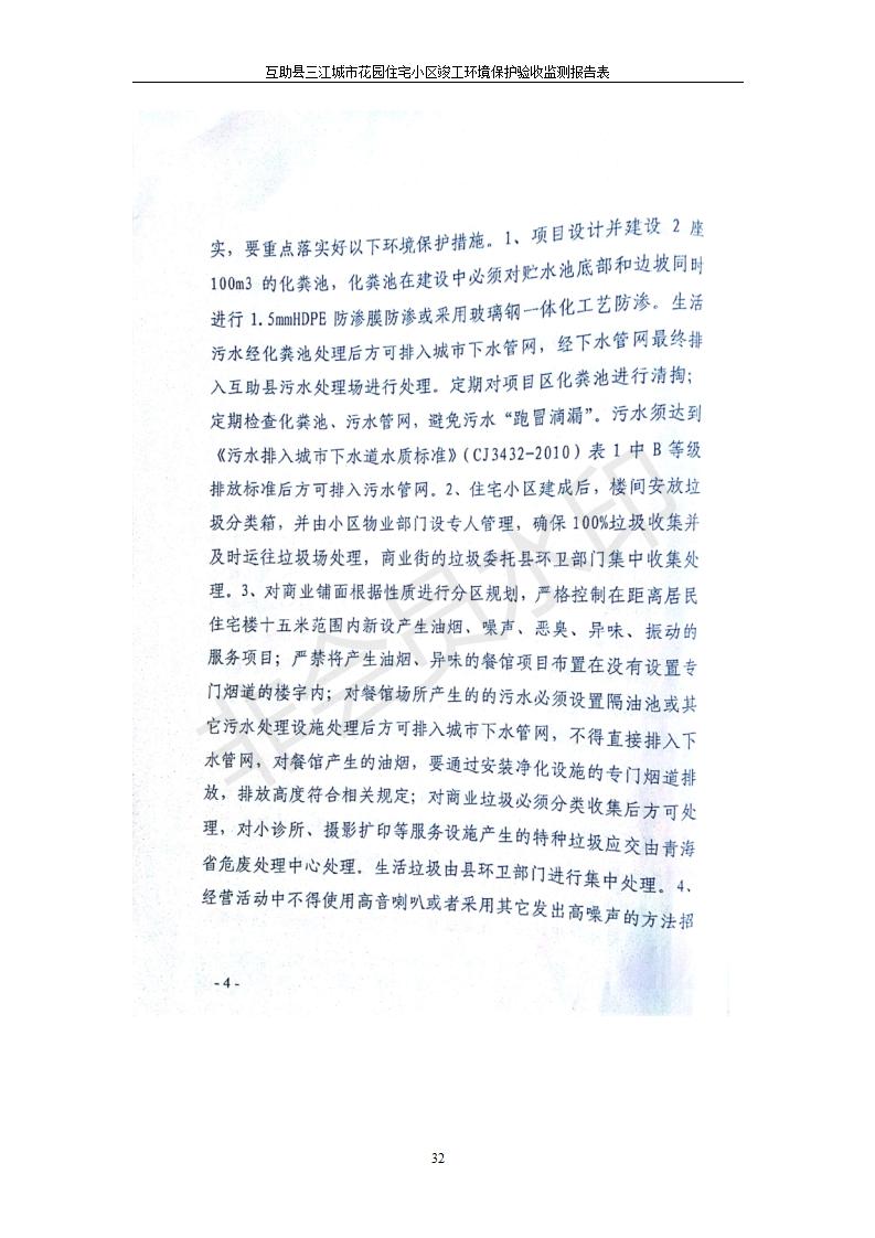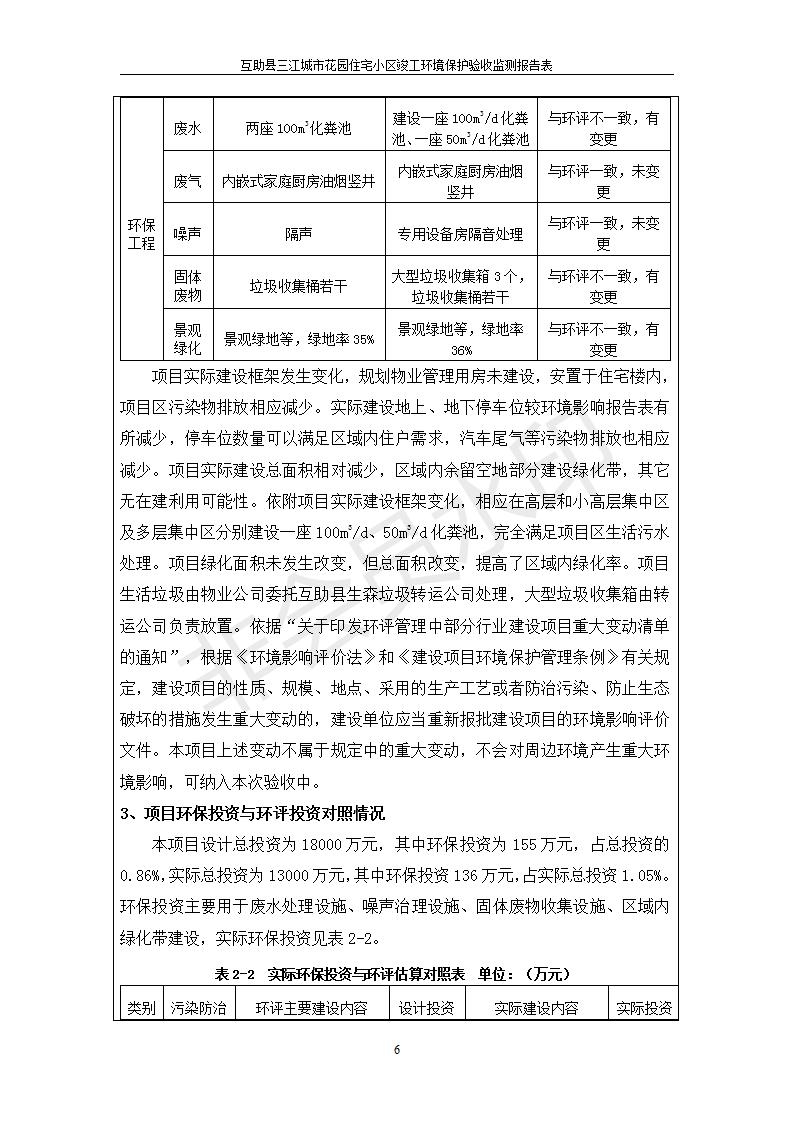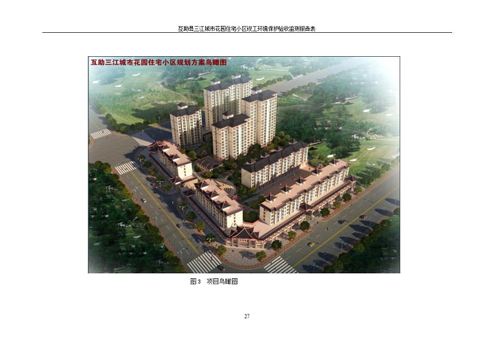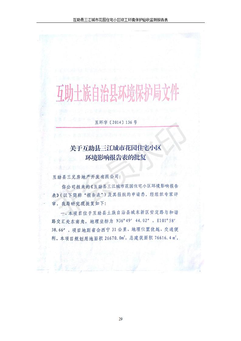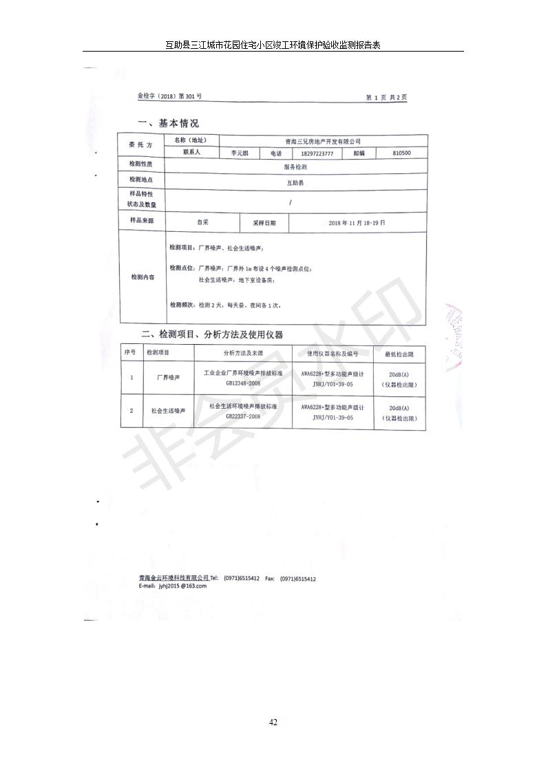 根據(jù)中華人民共和國國務院令第682號《國務院關于修改〈建設項目環(huán)境保護管理條例〉的決定》和《建設項目竣工環(huán)境保護驗收暫行辦法》(國務院令682號),互助縣三江城市花園住宅小區(qū)(包括竣工環(huán)境保護驗收監(jiān)測報告表和驗收意見)公示如下。 一、項目名稱: 互助縣三江城市花園住宅小區(qū)竣工環(huán)境保護驗收監(jiān)測報告表 二、地點:青海省海東市互助土族自治縣威遠鎮(zhèn)安定路與和諧路交匯處東南角 三、建設單位:青海三兄房地產(chǎn)開發(fā)有限公司 四、建設內(nèi)容:項目規(guī)劃用地面積26670.0m2,實際占地面積26670.0m2,項目占地面積未發(fā)生變化,規(guī)劃設計建筑總面積76616.4m2,其中商業(yè)建筑面積8994m2。實際建筑總面積58639.64m2,其中商業(yè)建筑面積9894.27m2。 五、聯(lián)系人:張工 六、聯(lián)系電 話:0971-6515411 七、公示時間:二〇一九年六月五日至二〇一九年七月三日 公示期間,對上述公示內(nèi)容如有異議,請以書面形式反饋,個人須署真實姓名,單位須加蓋公章。