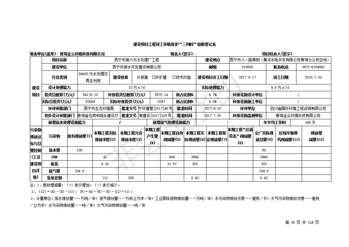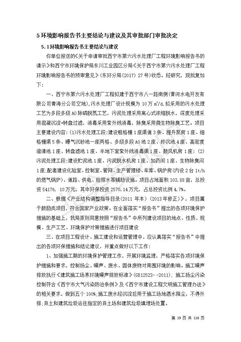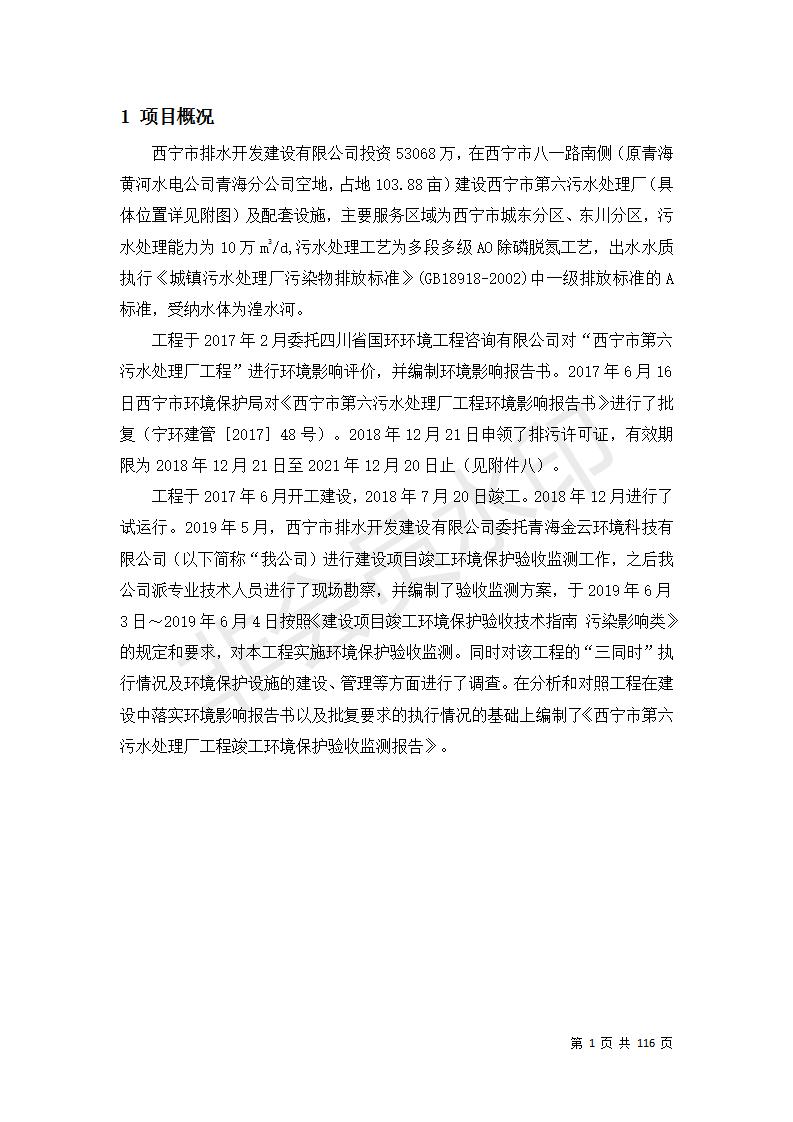 西寧市第六污水處理廠工程竣工環(huán)境保護(hù)驗(yàn)收公示發(fā)布日期:(2019-7-11) 點(diǎn)擊次數(shù):2852 |