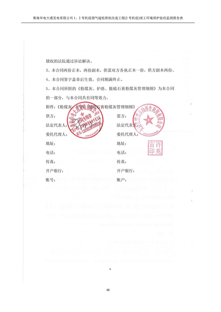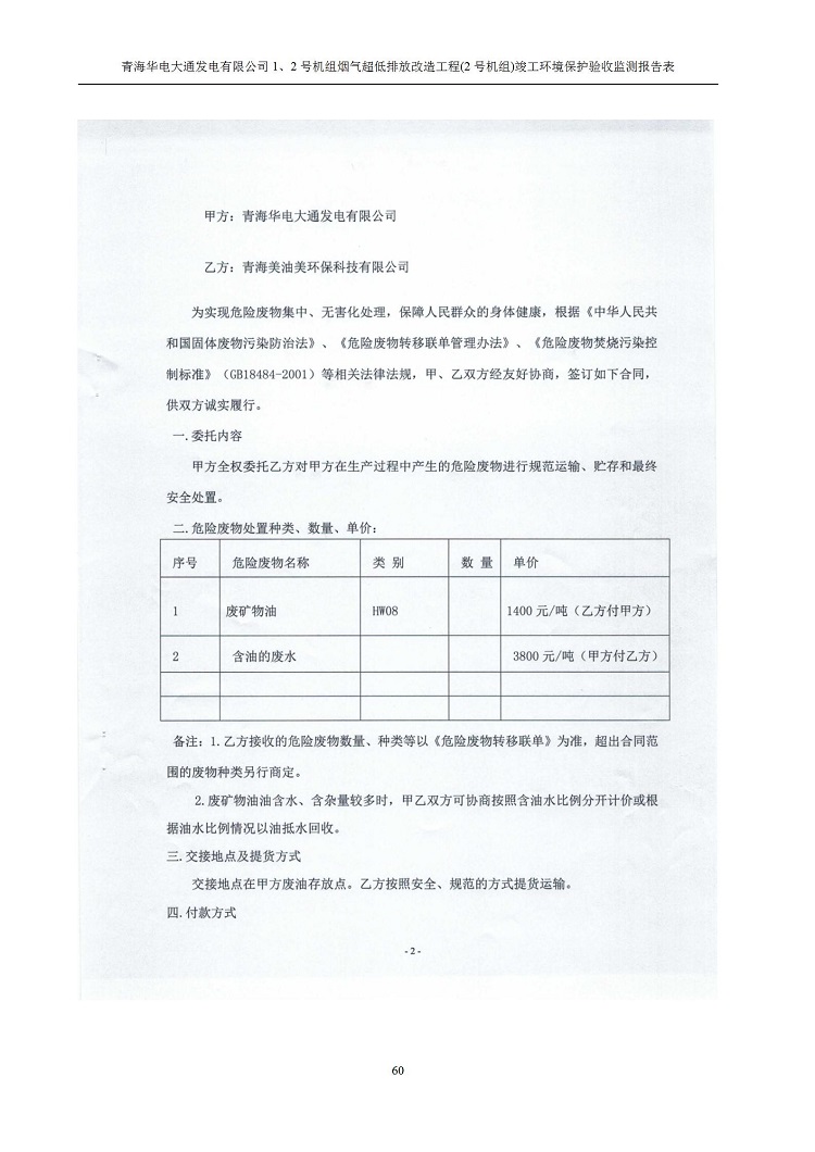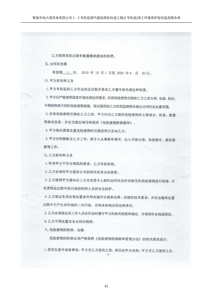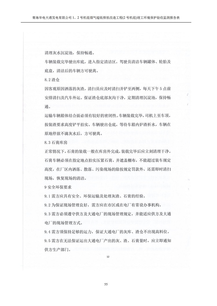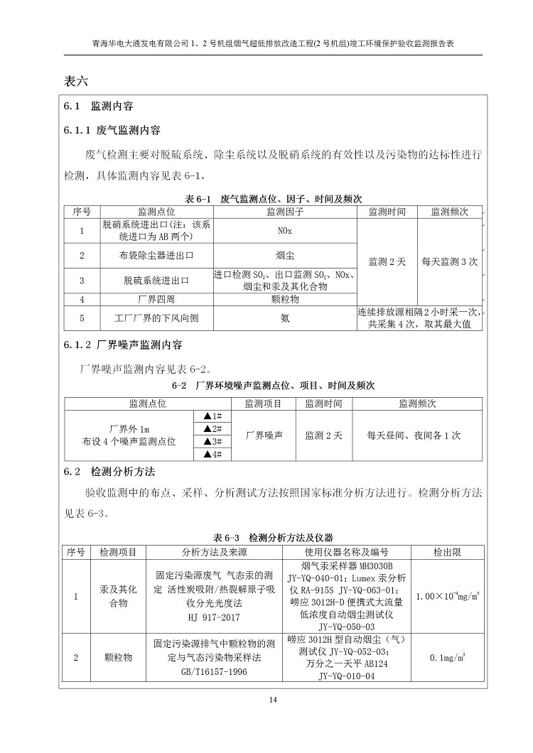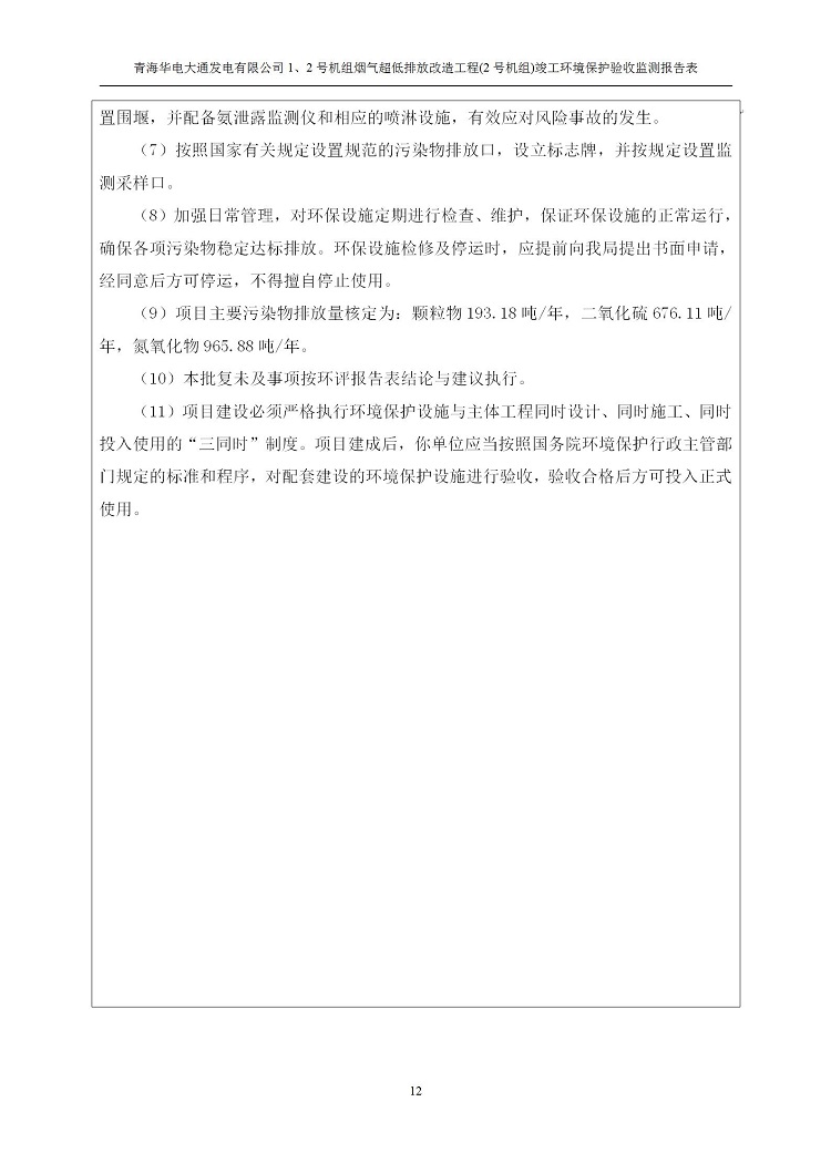 根據(jù)中華人民共和國國務(wù)院令第682號《國務(wù)院關(guān)于修改〈建設(shè)項(xiàng)目環(huán)境保護(hù)管理?xiàng)l例〉的決定》和《建設(shè)項(xiàng)目竣工環(huán)境保護(hù)驗(yàn)收暫行辦法》(國務(wù)院令682號),青海華電大通發(fā)電有限公司1、2號機(jī)組煙氣超低排放改造工程(2號機(jī)組) (包括竣工環(huán)境保護(hù)驗(yàn)收監(jiān)測報(bào)告表和驗(yàn)收意見)公示如下。 一、項(xiàng)目名稱:青海華電大通發(fā)電有限公司1、2號機(jī)組煙氣超低排放改造工程(2號機(jī)組) 竣工環(huán)境保護(hù)驗(yàn)收監(jiān)測報(bào)告表 二、地點(diǎn):青海省西寧市大通縣寧張公路31公里處 三、建設(shè)單位:青海華電大通發(fā)電有限公司 四、建設(shè)內(nèi)容:2號機(jī)組煙氣超低排放改造,2號機(jī)組改造內(nèi)容為脫硫系統(tǒng)保留原脫硫裝置作為一級塔,新建二級合金托盤塔串聯(lián)吸收塔;對原“1+2”電袋復(fù)合除塵器的一電場電源進(jìn)行改造,對布袋除塵器濾袋進(jìn)行更換;對原脫硝系統(tǒng)選擇性催化還原法(SCR)脫硝工藝加裝備用催化劑,每層催化劑增加聲波吹灰器,優(yōu)化SCR反應(yīng)器入口導(dǎo)流板。 五、聯(lián)系人:馬世敏 六、聯(lián)系電 話:0971-6515411 七、公示時(shí)間:二〇二〇年四月二十九日至二〇二〇年五月二十八日 公示期間,對上述公示內(nèi)容如有異議,請以書面形式反饋,個(gè)人須署真實(shí)姓名,單位須加蓋公章。