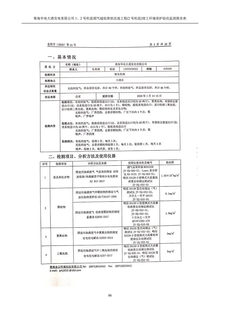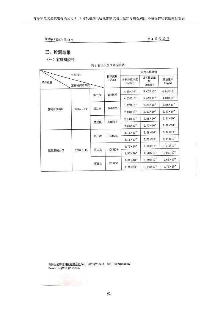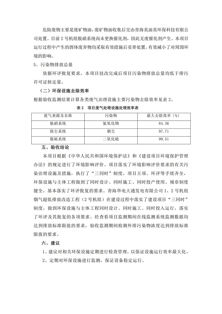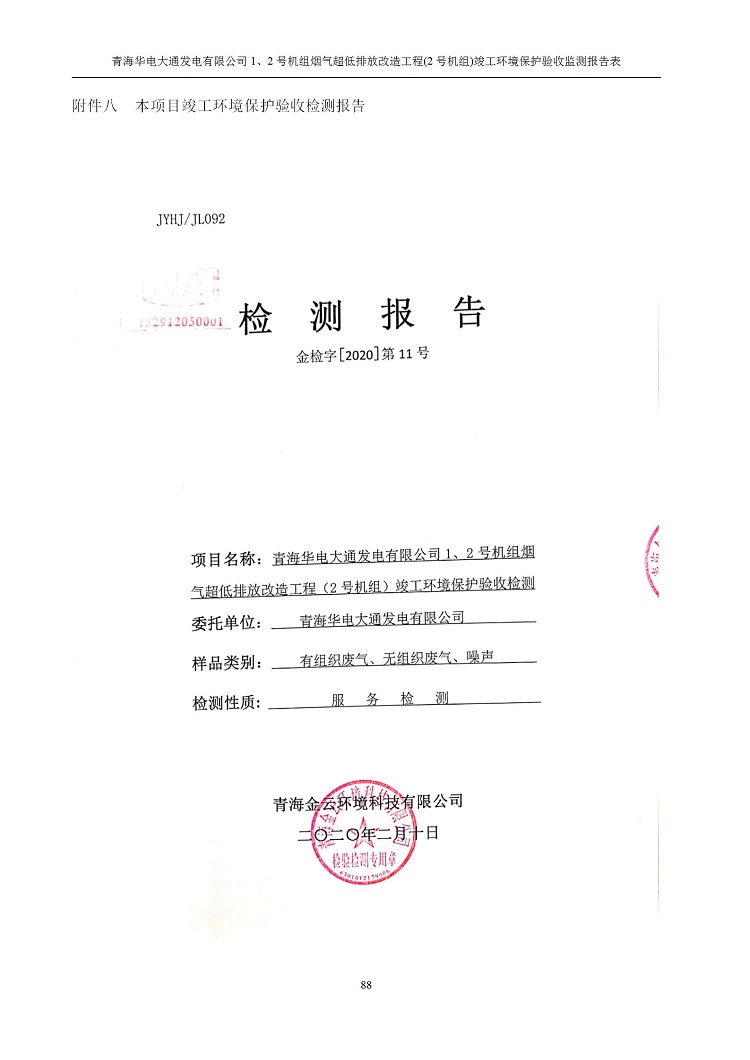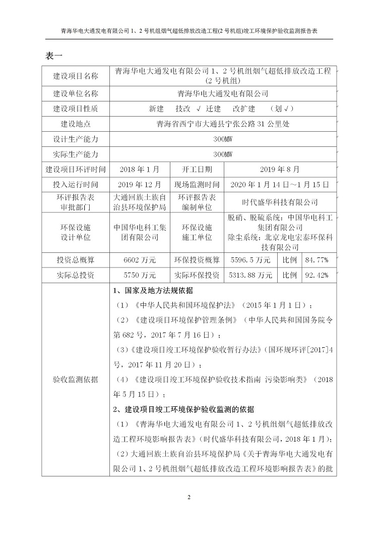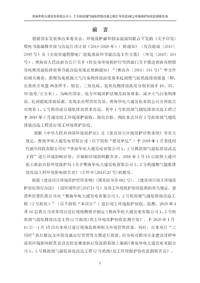 青海華電大通發(fā)電有限公司1、2號機(jī)組煙氣超低排放改造工程(2號機(jī)組) 竣工環(huán)境保護(hù)驗(yàn)收監(jiān)測報(bào)告表公示發(fā)布日期:(2020-4-29) 點(diǎn)擊次數(shù):2632 |