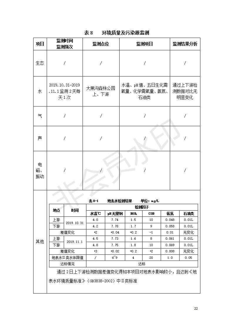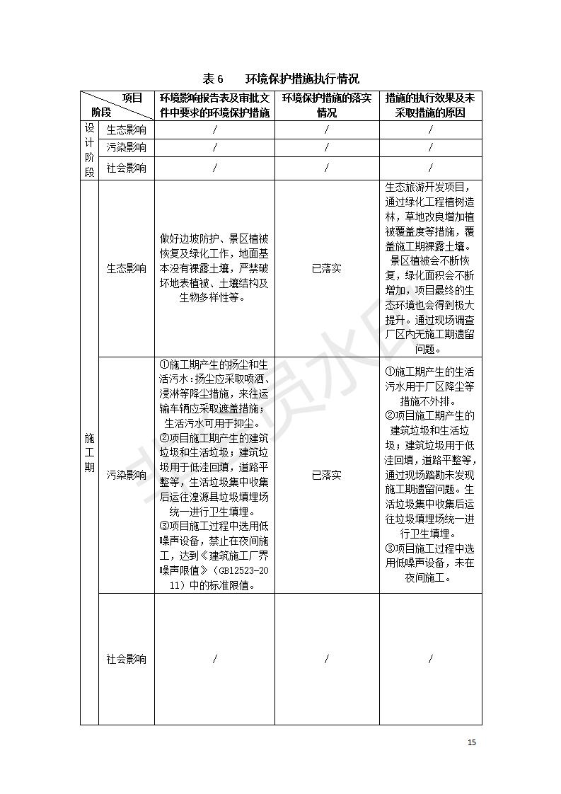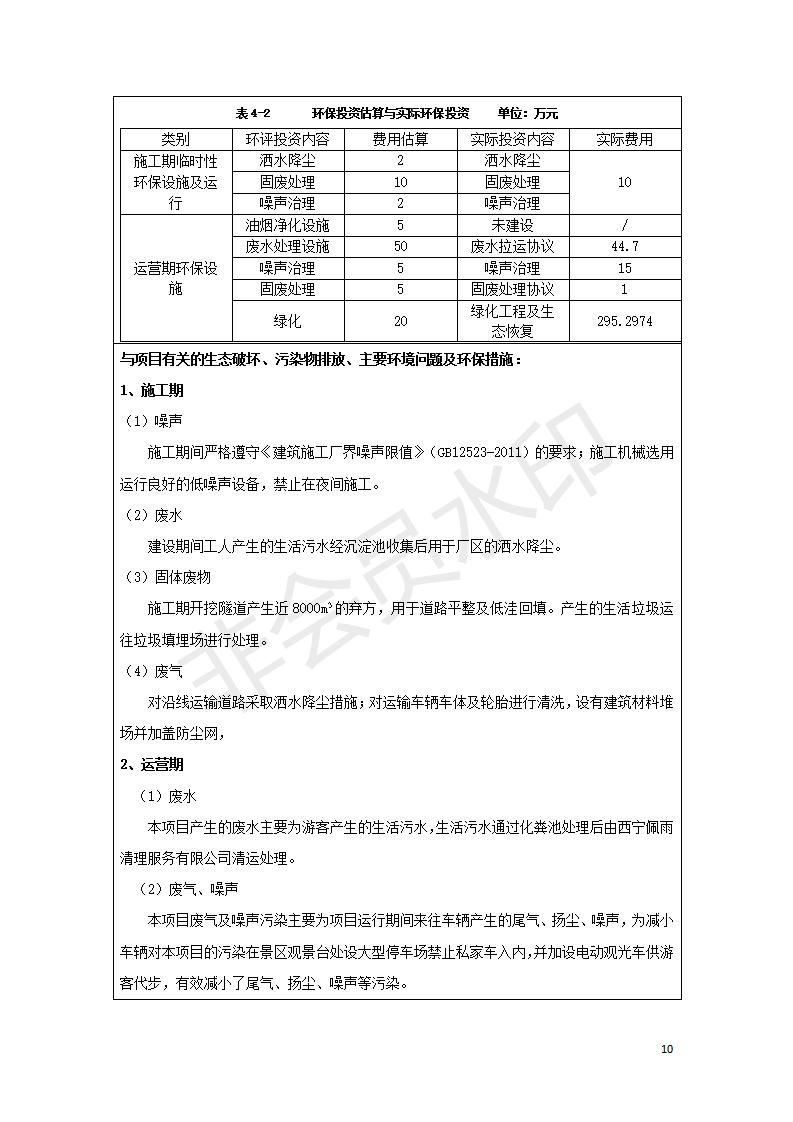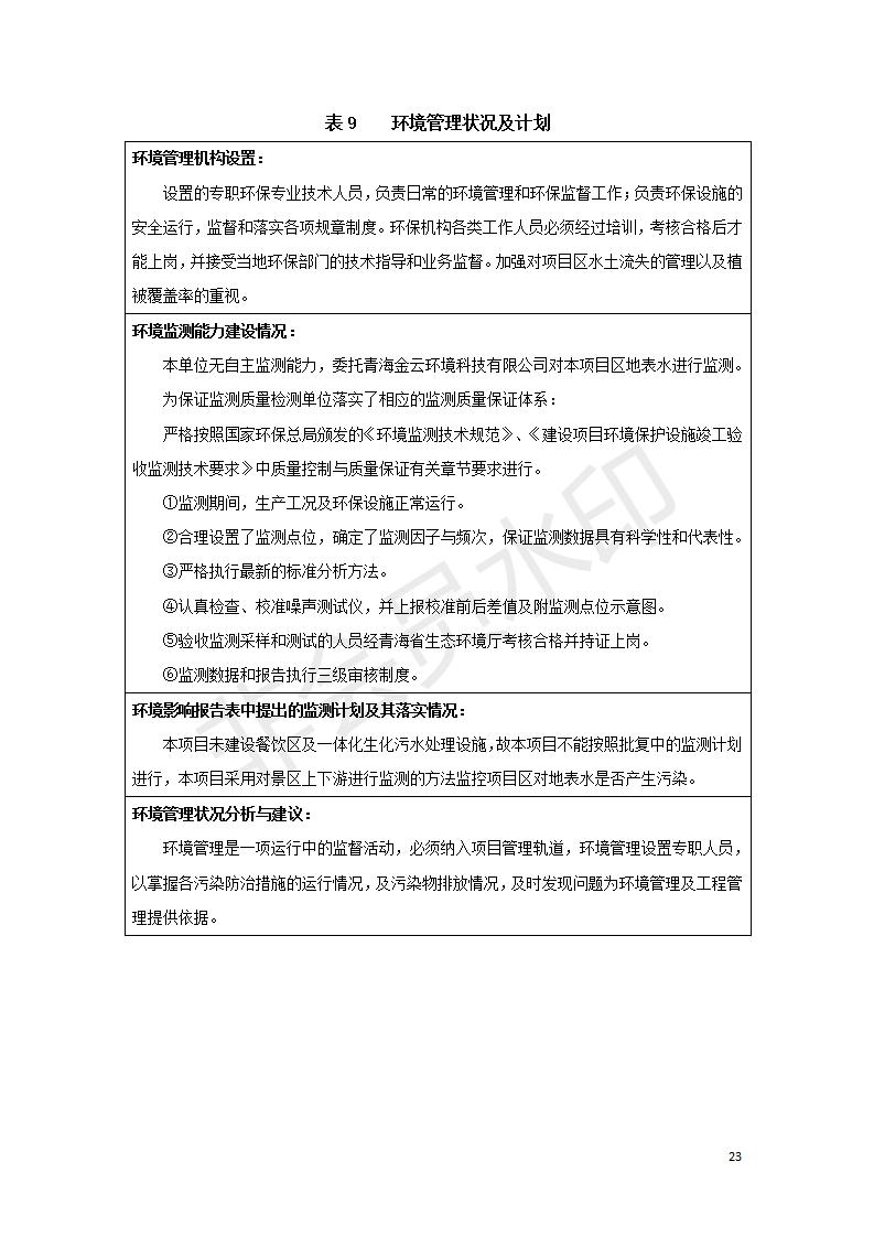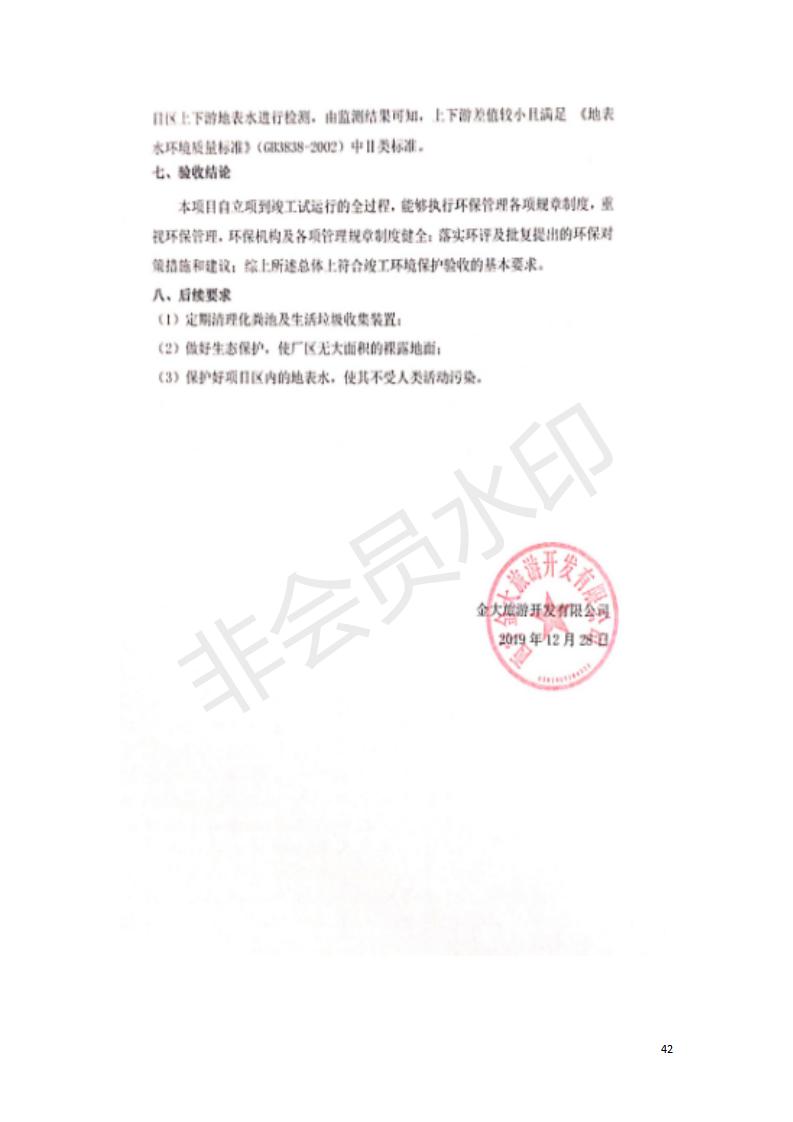 根據(jù)中華人民共和國國務院令第682號《國務院關于修改〈建設項目環(huán)境保護管理條例〉的決定》和《建設項目竣工環(huán)境保護驗收暫行辦法》(國務院令682號),湟源海藏咽喉森林公園中心服務區(qū)改建項目(階段性),(包括竣工環(huán)境保護驗收調查表和驗收意見)公示如下。 一、項目名稱:湟源海藏咽喉森林公園中心服務區(qū)改建項目(階段性) 竣工環(huán)境保護驗收調查表 二、地點:青海省湟源縣東峽鄉(xiāng)大黑溝 三、建設單位:西寧金大旅游開發(fā)有限公司 四、建設內容:本次階段性驗收以自然景觀為主,建設內容為濱水景觀帶、觀景臺、景區(qū)道路及基礎設施。項目范圍從景區(qū)大門至中心位置,全長4800m。 五、聯(lián)系人:張工 六、聯(lián)系電 話:0971-6515411 七、公示時間:二〇二〇年四月二十九日至二〇二〇年五月二十八日 公示期間,對上述公示內容如有異議,請以書面形式反饋,個人須署真實姓名,單位須加蓋公章。